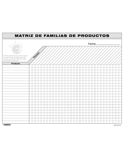 Esta forma es fundamental para el enfoque analítico Value Stream Mapping; se utiliza para ayudar al equipo taller analizar productos en familias de productos basados en procesos similares.